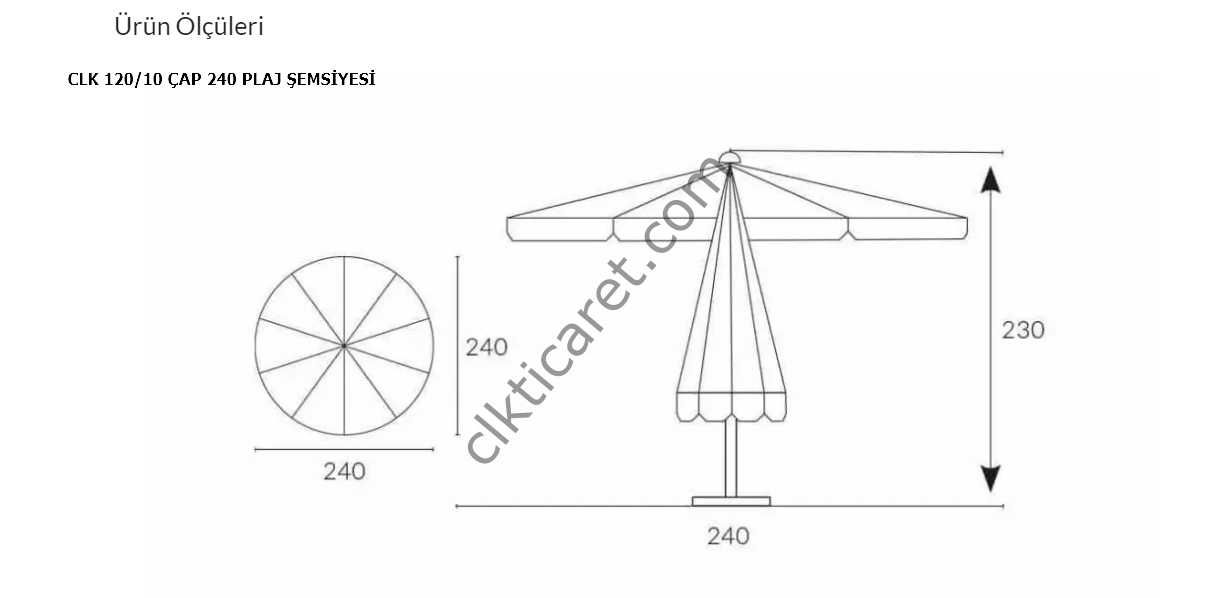 CLK 200/10 Çap 200 10 Kollu Plaj Şemsiyesi