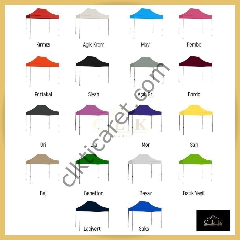 - Kullanım Alanları: Kamp, Bahçe, Piknik, Gölgelik, Outdoor, Organizasyon, Stand, Pazar gibi tüm alanlarda kullanabileceğiniz en sağlam katlanabilir gazebo çadır imalatını yapan tek firma CLK Gazebo Çadır.