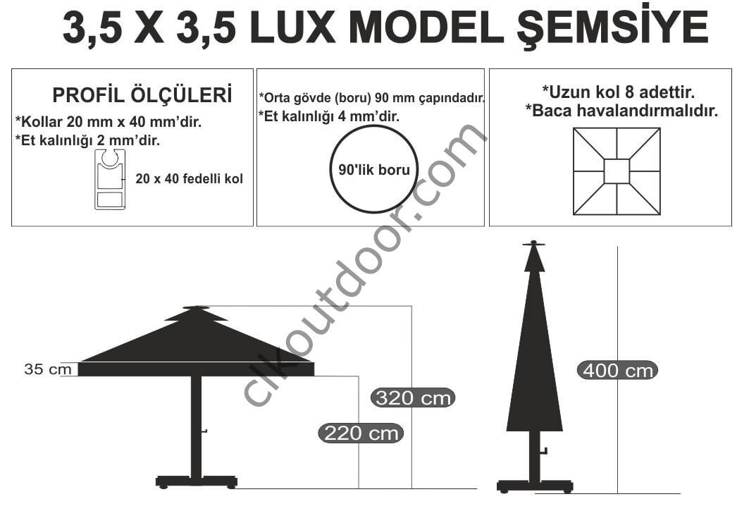 CLK 3,5m x 3,5m Teleskopik Mekanizmalı Kare Eko Bahçe Şemsiyesi